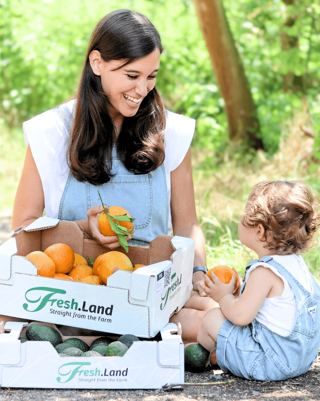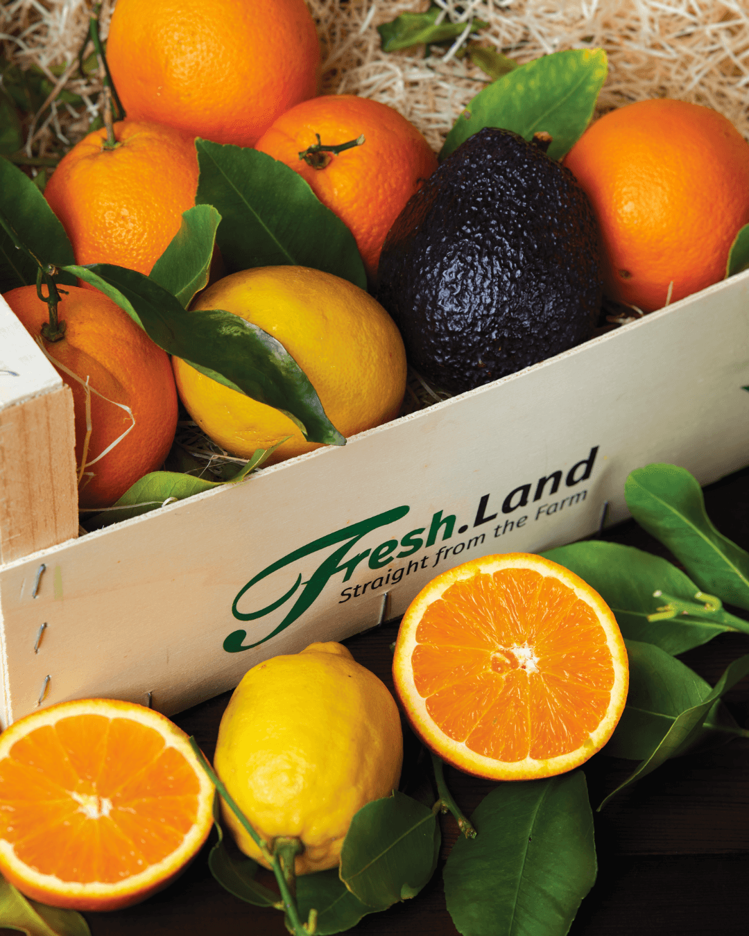 Fresh.Land startede med appelsiner fra Arturs farm i Algarve, Portugal. Vores sortiment af produkter har siden udviklet sig, og i dag samarbejder vi også med landmænd i Danmark, Spanien, Belgien, Sverige og Italien. Vi tror på gennemsigtighed fra start til slut. Vi har derfor som de første indført høstdato på de fleste af vores produkter. Høstdatoen fremgår af kassen og holder os op på vores løfte om at levere friskhed direkte til din dør hver gang. Vores varer leveres i fulde lastbiler og vi kunne aldrig drømme om at bruge fly. Den korte tid fra høst til levering skyldes alene, at vores kasser leveres direkte fra landmanden hjem til dig. Det er smagen af frugter, som havde du høstet dem selv.
